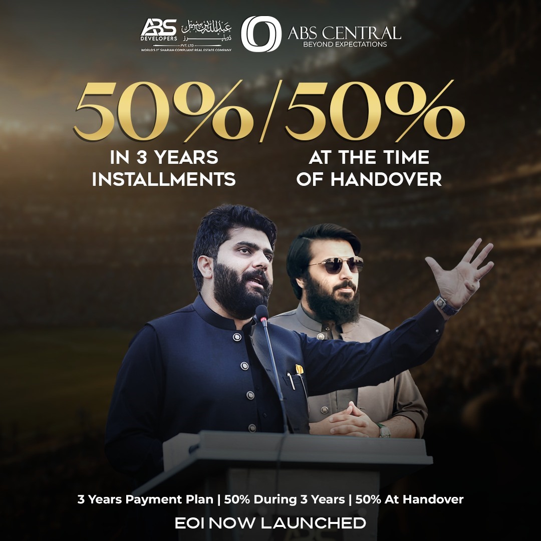 In the mega-developing city, a mega project has been launched, ABS Central by Bahria Town Developers near Ring Road SL3 Interchange. It will be the future of the city, shaping markets, trends, and investments. Currently, it is in the developing phase with easy payment plans, a golden opportunity for investors and those who want to buy their own houses.