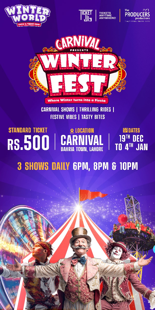 Winter Fest Lahore is a must-visit event as it provides you access to carnival shows, thrilling rides, festive decor, and live performances for just 500 rupees. It is an ideal event where families with children can visit with kid-friendly rides and food stalls. Moreover, there is a flexible choice for shows at 6 PM, 8 PM, and 10 PM, suitable for all age groups.